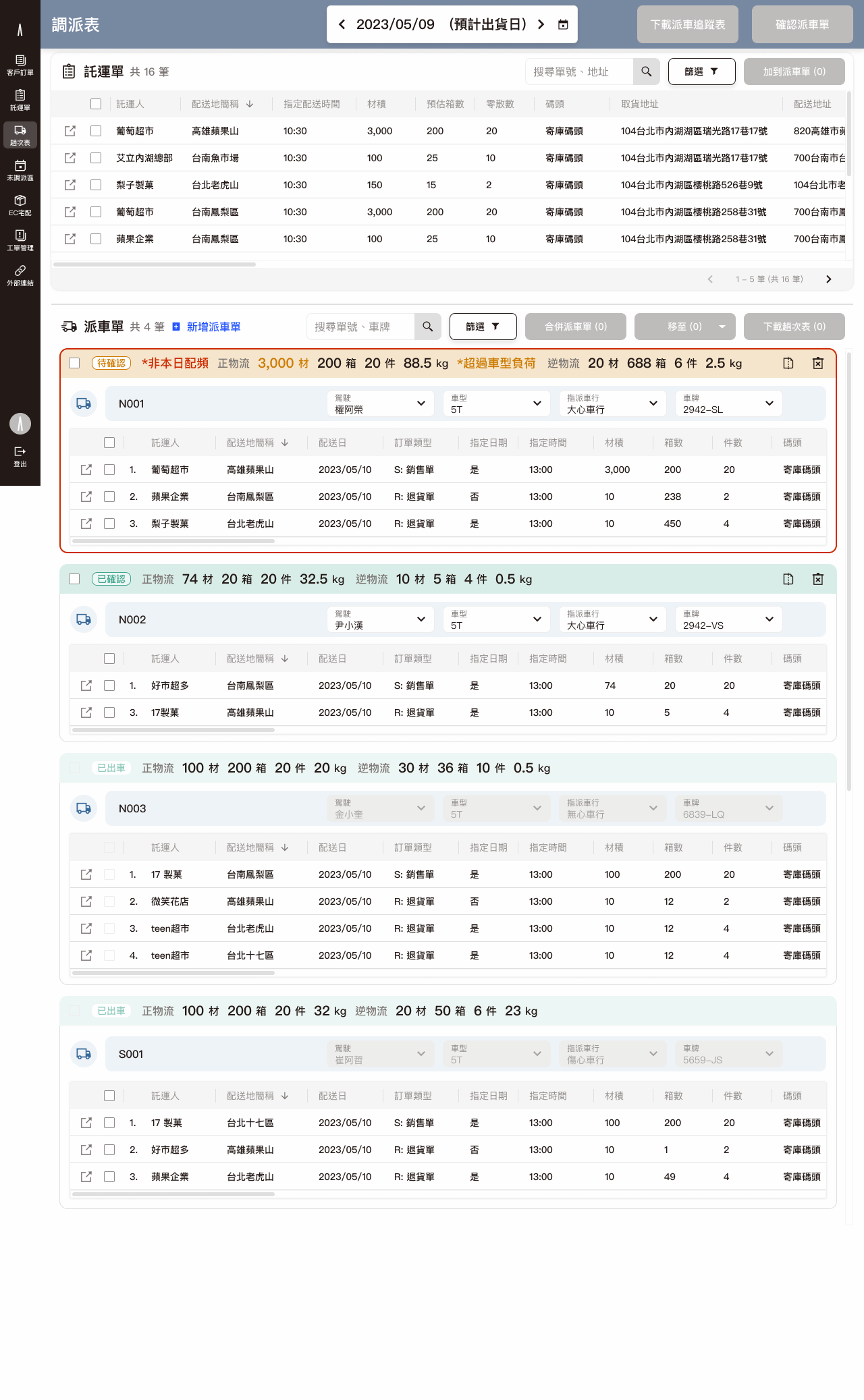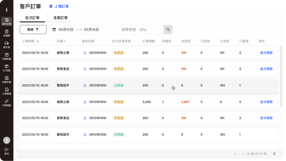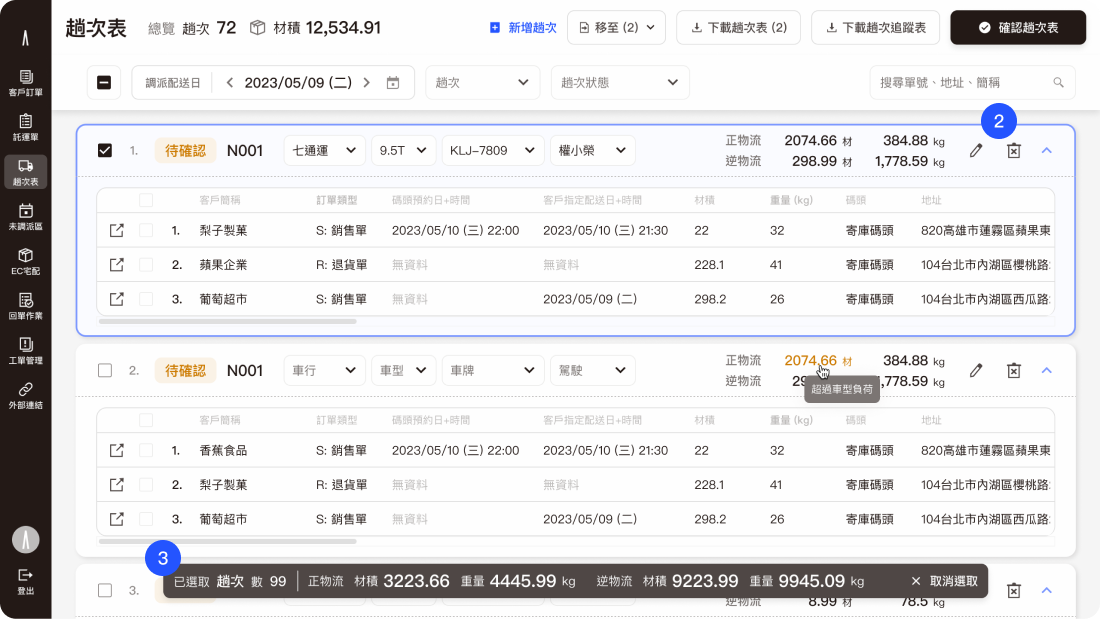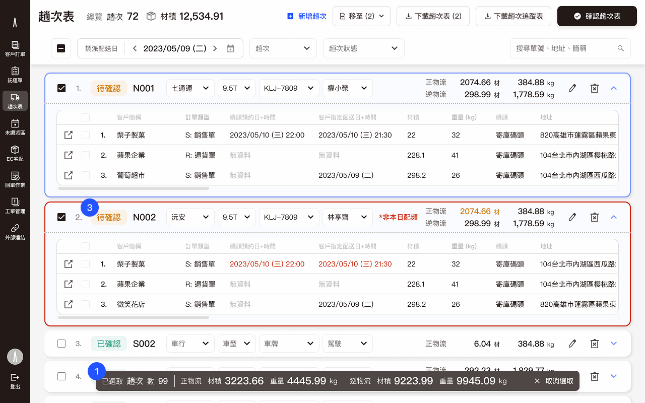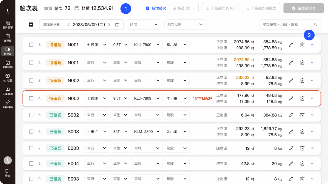 By aligning requirements and feasibility with PMs and engineers early in the process, the final design significantly reduced back-and-forth clarifications and revisions during development. The reorganized interface empowers users to monitor order statuses more efficiently, enhancing the overall smoothness of daily dispatching and operational workflows.