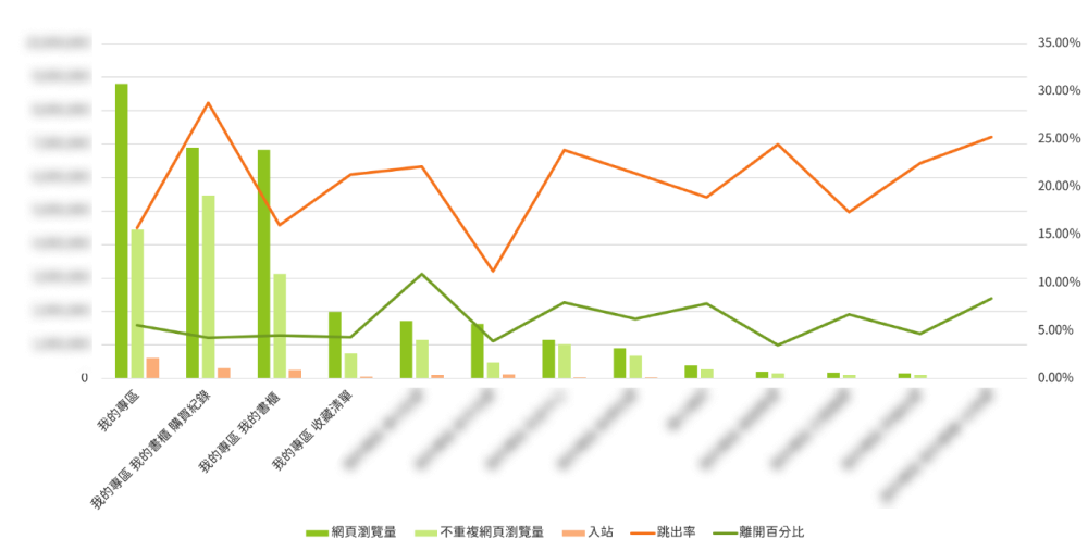 From Google Analytics, querying the subpage traffic ratio under the "Member Area," pages with higher traffic are those more frequently used by users. This is used to adjust the sorting of the Member Area page menu.